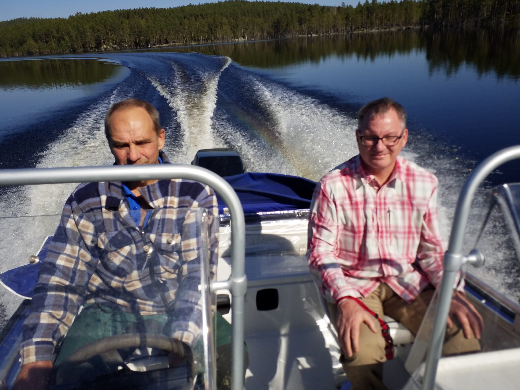 We then go down to the lake and jump into Gunnar’s boat. We had very nice boat trip across the mirror-blue lake.