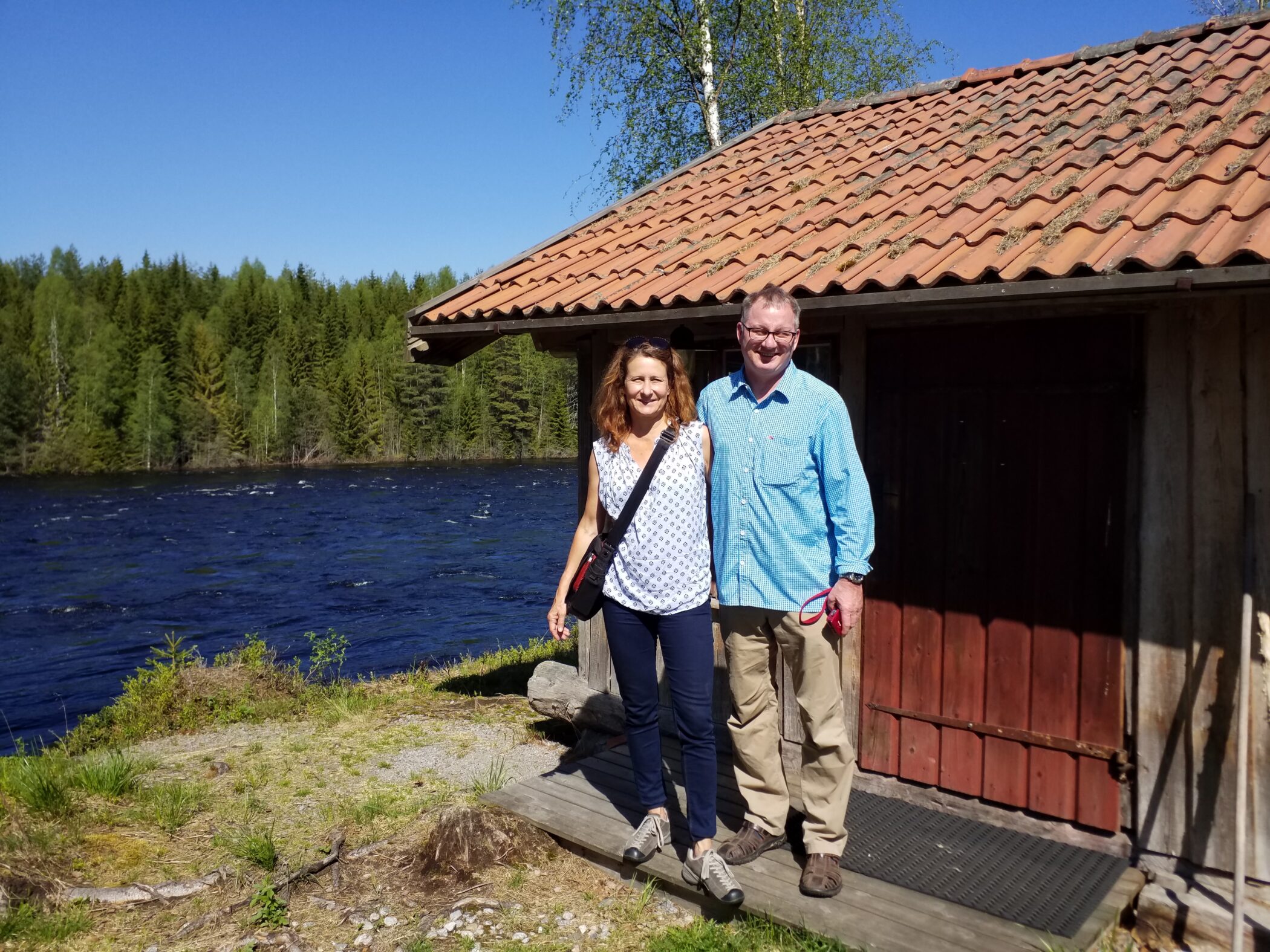 At 13.00 I meet Rolf and Yvonne at the next FIMS destination, Riverwild Fishing & Lodgings. The destination is located approximately 30 minutes south of Wildlife Sweden and is beautifully located beside the Ljusnan River. Riverwild offers fly fishing for grayling and trout. A facility with caravan parking, small cottages and a sauna. The sauna is located beside the Ljusnan River and provides accommodation. They have plans to develop the sauna building to provide a flushing toilet and a shower. In addition, the next-door timber cottage by the sauna is to become accommodation. The sauna will be relocated in a separate building.